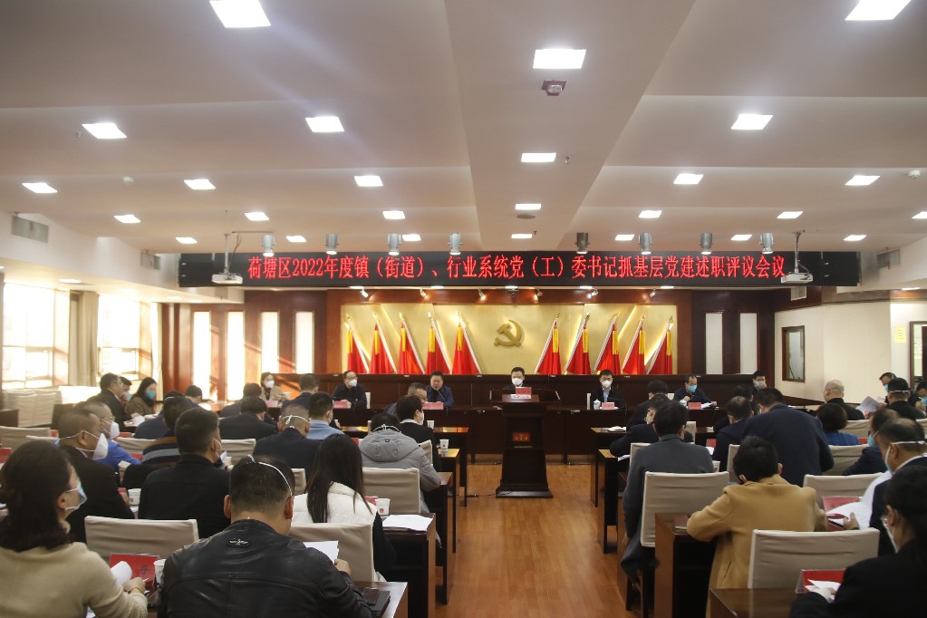 1月13日,荷塘区召开2022年度镇(街道)、行业系统党(工)委书记抓基层党建述职评议会议,检阅2022年度抓基层党建工作责任落实情况,安排部署2023年全区基层党建工作。市委组织部党员管理科科长贾宝锋到会指导,区委书记方靖出席会议并讲话,会议由区委副书记、政法委书记余鹏主持。区领导李小冬、刘定光、邹晖 、张宇晨、田业强、单丹出席会议。