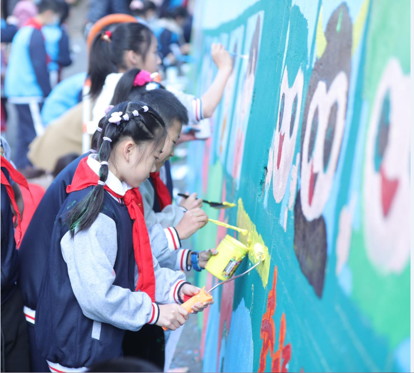 启动仪式后,邹晖一行前往有色职大生活小区公益墙绘点,现场观看师生墙绘。现场的老师和同学们充分发挥自身专业特长,拿起画笔,精心绘画,一系列栩栩如生且富有文化气息的作品跃然墙上,吸引了不少路人驻足观看。