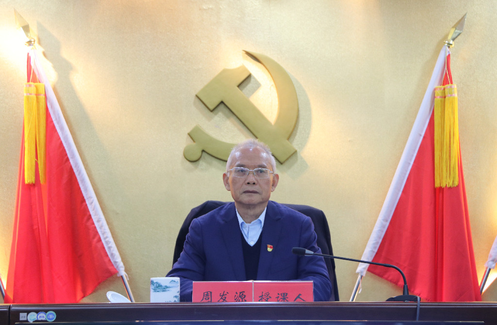 湖南省生态文明研究与促进会会长、研究员,湖南生态文明公益大讲堂特聘专家周发源授课
