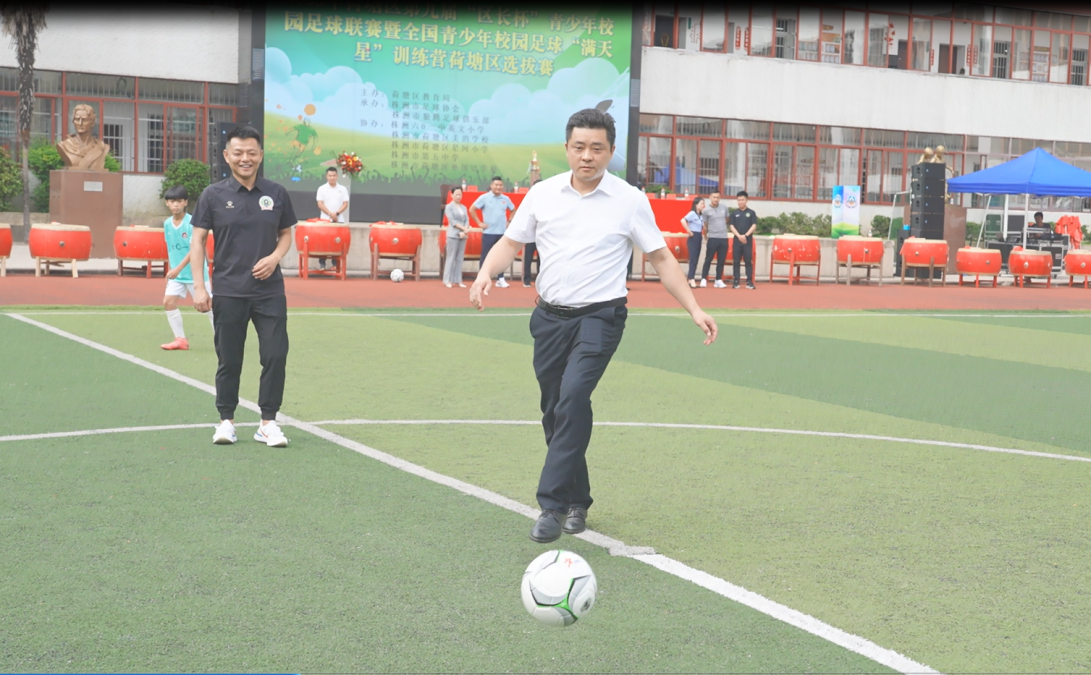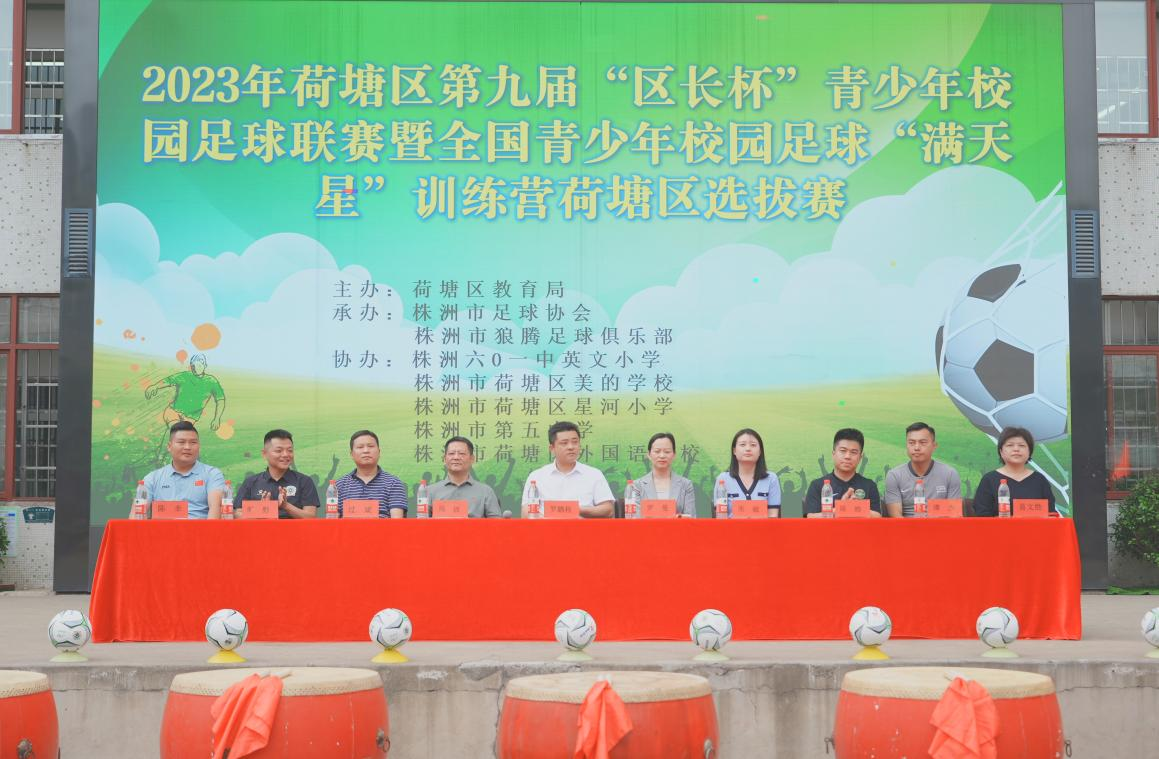 6月16日,2023年荷塘区第九届“区长杯”青少年校园足球联赛暨全国青少年校园足球“满天星”训练营荷塘区选拔赛开幕式在株洲六0一中英文小学拉开帷幕。区委副书记、区长罗鹏程出席活动并宣布开幕,区领导罗曼参加开幕式。