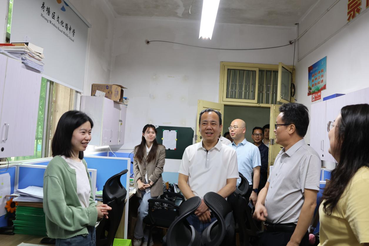 李小冬一行实地走访了第十九中学、文化路中学、景弘中学、景炎初级中学4所学校,细致查看校园环境、教学设施配置情况,并走进教师办公室,与一线教师面对面深入交流,关切询问教学工作中的实际困难与需求,倾听教师们对教育教学工作的意见和建议。