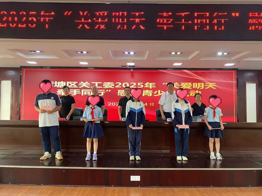 9月4日上午,荷塘区关工委开展2025年“关爱明天 牵手同行”慰问青少年活动。区委常委、组织部部长龙腾,区教育局党委书记、局长刘晔出席活动。活动由区关工委主任胡开元主持。