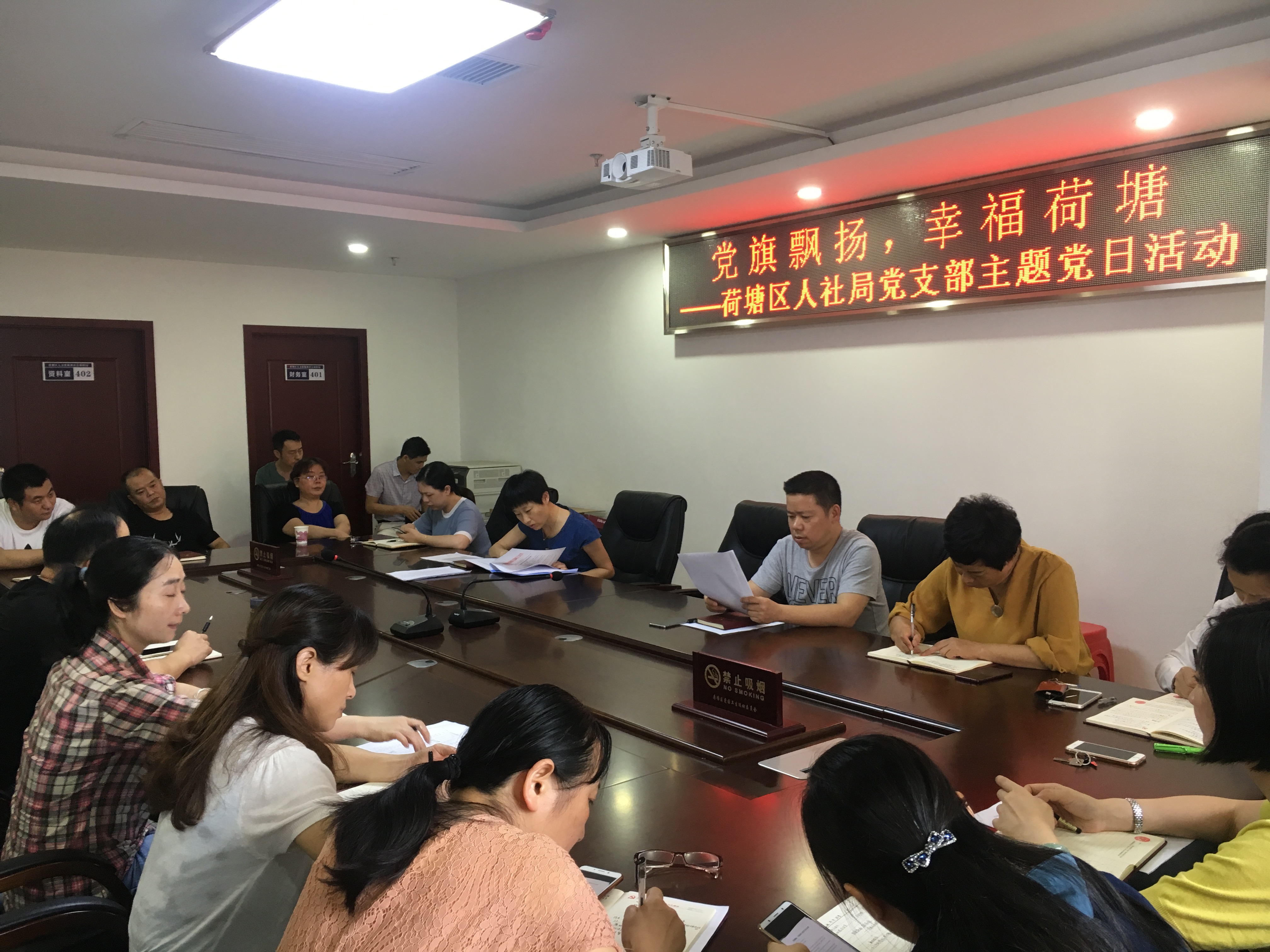 6月8日,荷塘区人社局在党员活动室组织开展“党旗飘扬,幸福荷塘”支部主题党日活动,全体党员参加了此次会议。