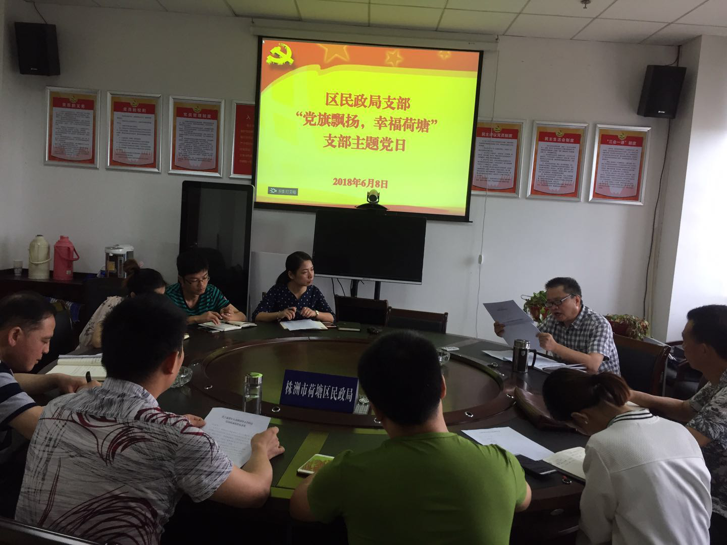 6月8日上午,荷塘区民政局党支部组织开展“党旗飘扬,幸福荷塘”支部主题党日活动,原社会组织党工委书记范松主持会议,支部全体党员参会。