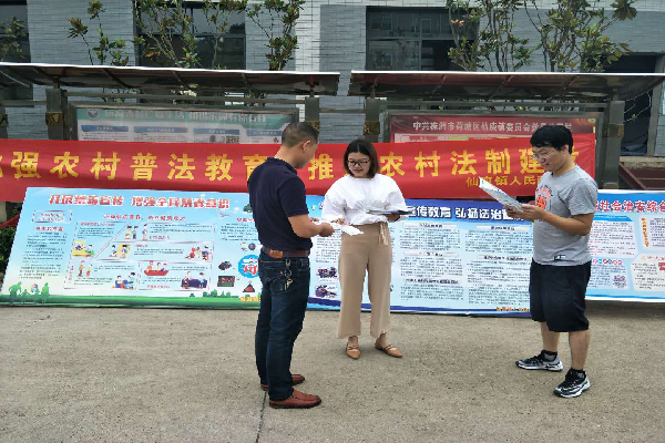 6月13日,金山司法所、茨菇塘司法所、仙庾司法所、合泰司法所分别在红旗广场、601厂、仙庾镇政府前坪、东湖公园西广场开展了法治宣传。6月14日,桂花司法所联合群主联盟在大润发开展法治宣传活动。6月15日,宋家桥司法所在四三0开展法治宣传。各司法所分别就《宪法》、《监察法》、《人民调解法》、《婚姻法》、《民法通则》等法律法规进行了详细的宣传。在宣传活动现场,工作人员通过悬挂横幅、设置宣传台、法律知识宣传资料及法制宣传品、现场讲解等多种形式开展法治宣传。据统计,此次活动共发放宣传资料3000余份,解答法律咨询300余人次。