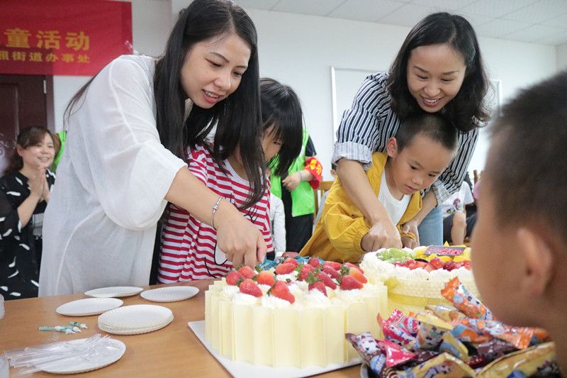 下午3点,活动在明照街道党工委委员潘书巧的致词中拉开帷幕,在“首尾相连”的破冰游戏中,志愿者与留守儿童们分成两组进行游戏比赛,现场欢声笑语精彩纷呈。活动现场工作人员还为小朋友们准备了节日蛋糕和节日卡片,让小朋友们在卡片上画写出自己的节日愿望,在潘书巧、易洲的带领下,所有小朋友、志愿者们一起吹蜡烛、吃蛋糕,一张张开心的笑脸、温馨的画面被相机捕捉隽刻成永恒。活动接近尾声时,街道为小朋友们发放了精心准备的节日礼品并合影留念。