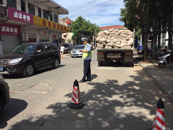 就这样民警们顶着烈日连续工作长达4小时,直到货车离开现场,其中老民警贺树根带病坚持在岗,周围的群众也是纷纷竖起大拇指为他们点赞。