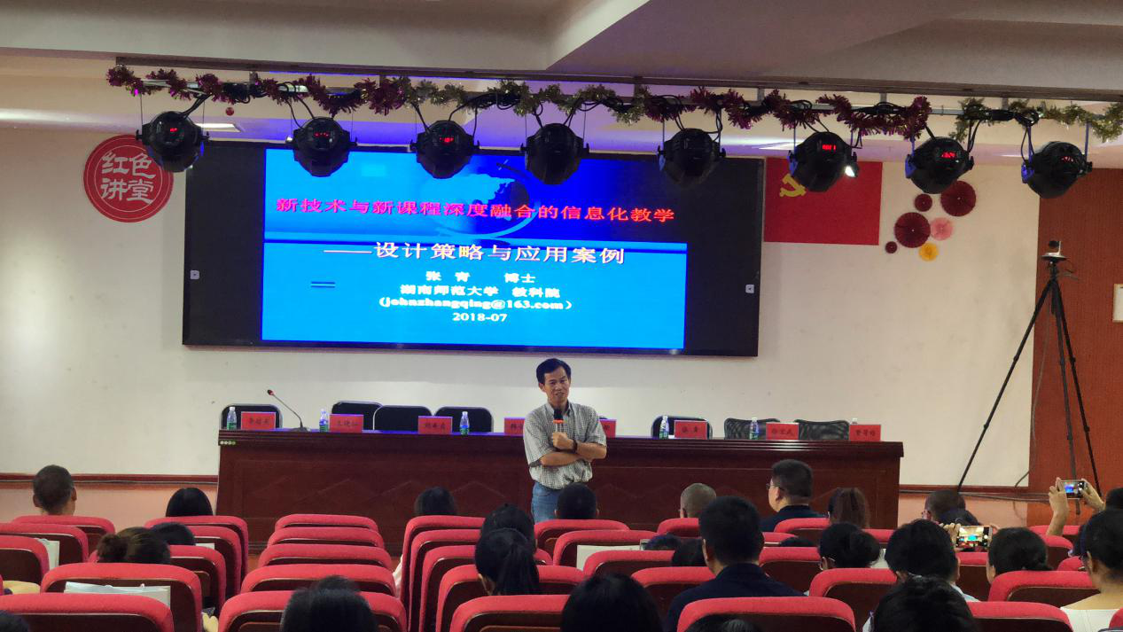 仪式结束后,张青、石福新先后作专题讲座。张青讲座的主题为《新技术与新课程深度融合的信息化教学——设计策略与应用案例》,他认为技术不是魔术师,真正的魔术师是教师,他以旅行作品设计等为例阐明了观点——点燃教师科学应用技术、提升应用技术能力,是当前新技术与新课程深度融合的关键所在。石福新在《直面教育信息化2.0时代》主题讲座中,从“内涵、特点、改变、思考”几个方面全面介绍了教育信息化2.0时代,并高度赞扬荷塘区智慧教育种子教师培养工程是定位准、队伍强、潜力大值得肯定,比例大、受众广、时间长值得关注,好经验、好模式、好典型值得推广的有意义的工程。