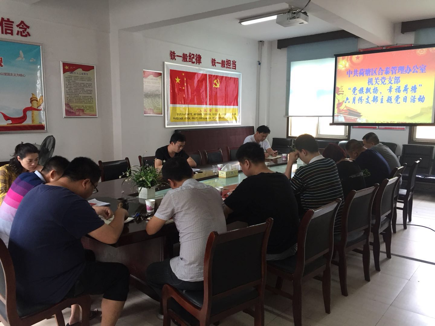 6月8日,合泰管理办公室机关党支部按照区委组织部《6月份支部主题党日活动工作提示》要求,在管理办三楼会议室以 “党旗飘扬,幸福荷塘”为主题,开展了当月支部主题党日活动,机关支部全体党员参加了活动。