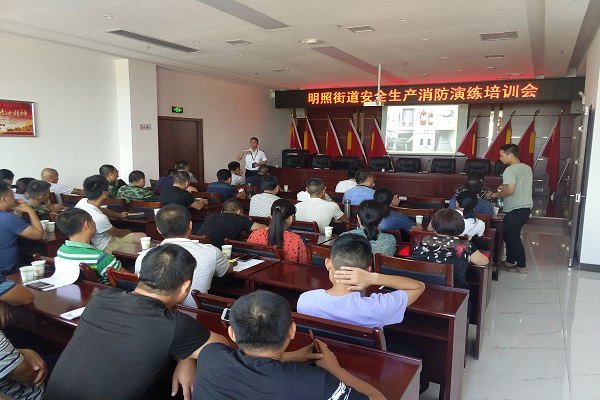 7月27日下午3点,明照街道办事处组织全体机关干部、各村村支两委、森林防火应急队、民兵应急分队、辖区各企业消防安全责任人、商户员工共计80余人参加了消防培训及灭火演练。