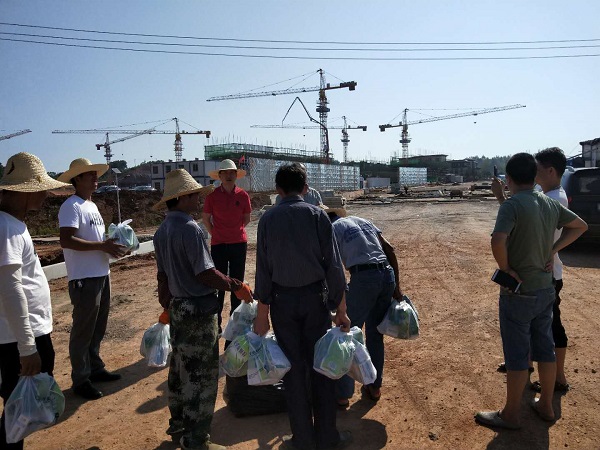 “天气热了,一定要注意身体。”“大家辛苦了,要注意做好防暑降温工作……”在新文化路施工现场,一派热火朝天的景象,工人们正在加紧施工。朱福兴走上前去为工人们送上防暑降温慰问品,并仔细询问项目建设进度和工人们的工作、生活情况。他嘱咐,高温天气施工一定要做好防暑工作,合理安排好作业时间和休息时间,进一步落实安全生产管理措施,消除各类高温天的安全隐患,确保工程进度井然有序、有条不紊,又好又快地推进项目建设。