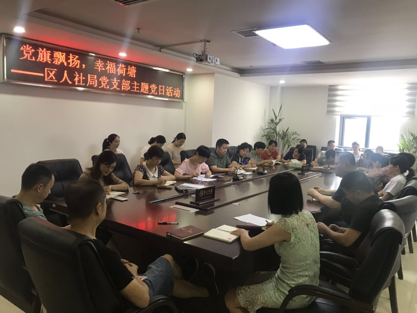 8月3日,区人社局全体党员在4楼会议室开展了8月“党旗飘扬,幸福荷塘”主题党日活动。