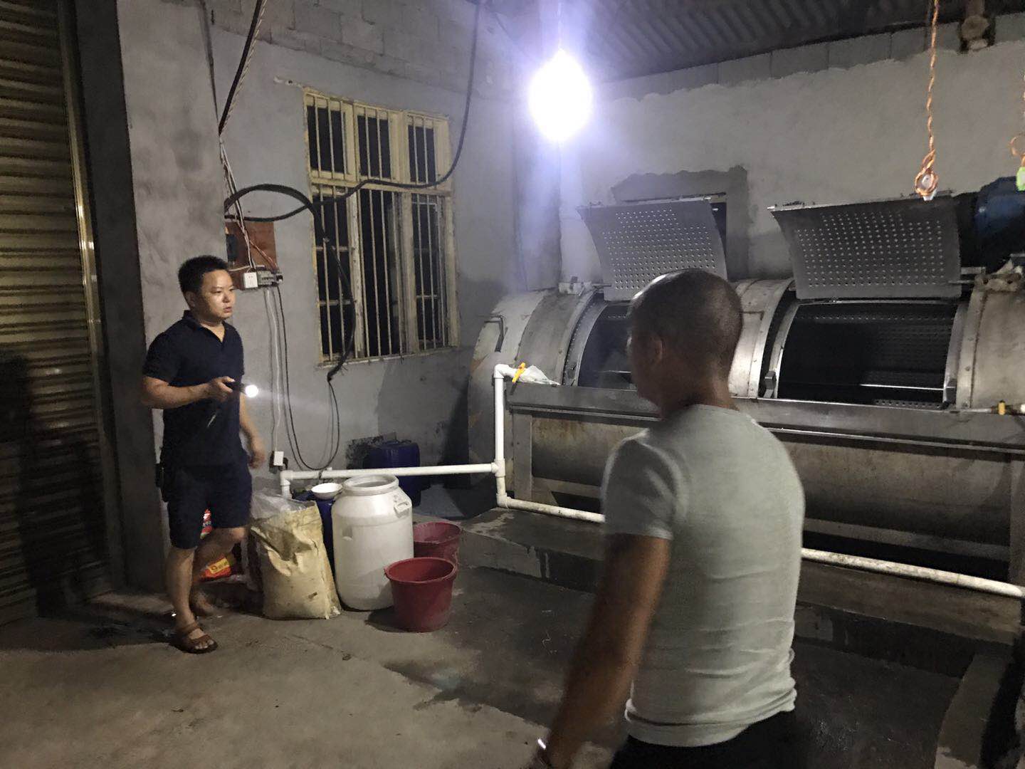 街道环保部门于8月22日收到群众举报,太阳村关寺冲组有一个洗水厂夜晚非法作业。街道立刻联络区环保分局,于8月22日下半夜开始备勤,并安排工作人员值守。备勤当晚工作人员发现洗水厂内开始作业,施工噪声很大,并没有任何隔音措施,生产废水未经处理,直接排入室外,严重影响了周边水域水质安全。工作人员当即用执法记录仪保存相关证据,并向区环保分局申请关停污染洗水厂,最终在8月23日成功关停该洗水厂,昼夜持续的工作取得了有效的成果。