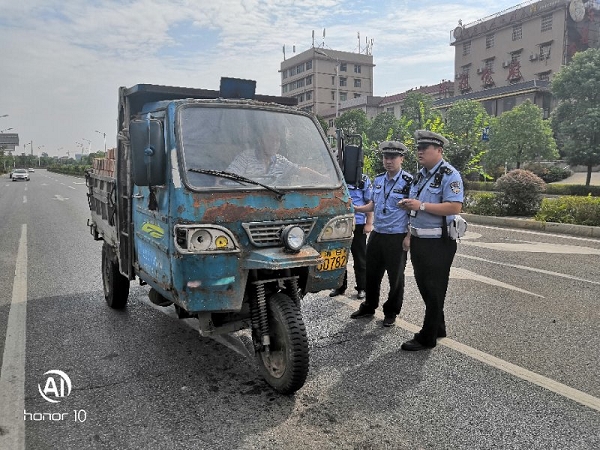 9月12日上午9点开始,荷塘交警大队副大队长周毅带队,在辖区的省道S211、茶马线路段再次开展农村道路交通整治。一辆由株洲开往浏阳的无牌、无保险的消防车上路行驶,被执勤民警拦下,民警检查时发现,该车还涉嫌改装,于是将该车暂扣做进一步调查。无独有偶,在整治过程中,民警还查获了2台报废的三轮农用车,依法被暂扣。民警对这些驾驶员分别进行宣传教育,并按照相关规定,依法开具了罚单。