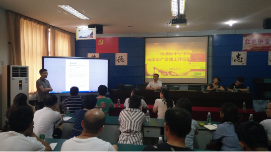 9月12日下午,荷塘区教育局组织辖区内所有中小学校在六〇一中英文小学开展固定资产清查工作经验交流活动。活动由区教育局会计核算中心主任邱德连主持,区教育局副局长李挺美全程指导,第五中学、八达小学副校长及各学校总务主任、资产管理员,国子公司工作人员近40人参加。