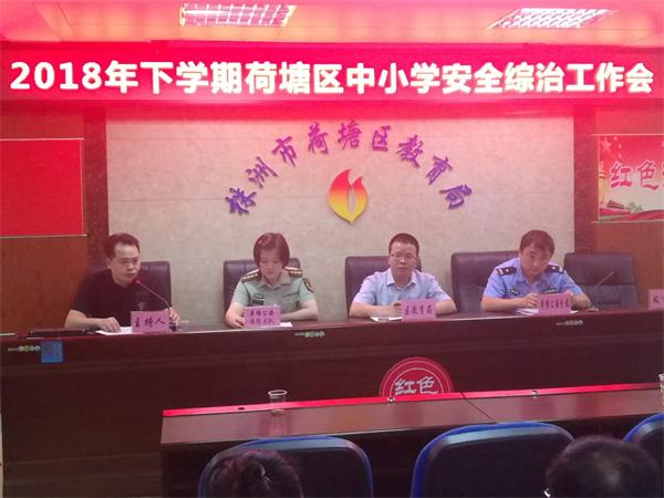 9月25日,荷塘区2018年下学期中小学安全综治工作会议在区教育局二楼会议室召开。会议通报了秋季开学专项督导检查情况,部署了近期全区中小学安全综治工作任务。区教育局安全股刘小望主持会议,局党委委员、副局长李挺美,公安荷塘分局治安大队副大队长刘仕民,荷塘消防大队参谋赵诗轶参加会议。