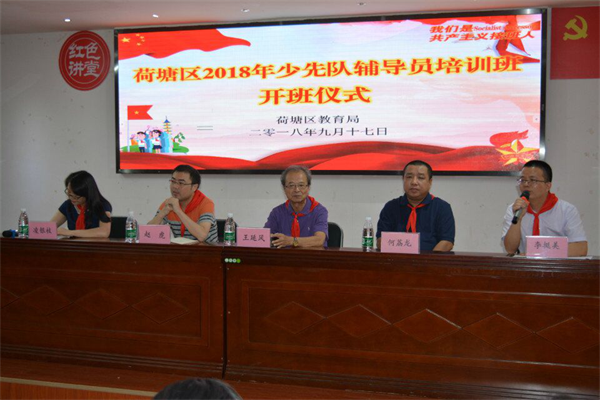 本次培训的开班仪式由荷塘区基础教育股股长凌银枝主持,中国少年儿童发展服务中心顾问王延风、中国少年儿童新闻出版总社发行部主任何荔龙、共青团株洲市委书记梁天琛、共青团荷塘区委书记赵虎、区教育局副局长李挺美出席了开班仪式。