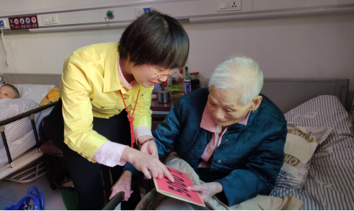 在荷塘区海福祥养老院,刘美贞亲切看望了99岁高龄的市五中退休教师高洁冰,虽年迈仍精神矍铄的高老师主动聊起了自己的家人及生活现状,并表示要健康快乐地活着,圆圆满满地度过百岁寿辰。刘美贞俯身认真地听着,细心叮嘱老人保重身体,乐观生活。走出病房,刘美贞又找来照料老人的护工,叮嘱其用心照料。