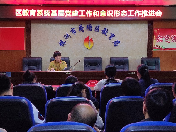 10月31日,荷塘区教育系统召开基层党建工作和意识形态工作推进会。会议由局党委副书记、副局长刘美贞主持,各中小学、幼儿园党组织书记参加会议。
