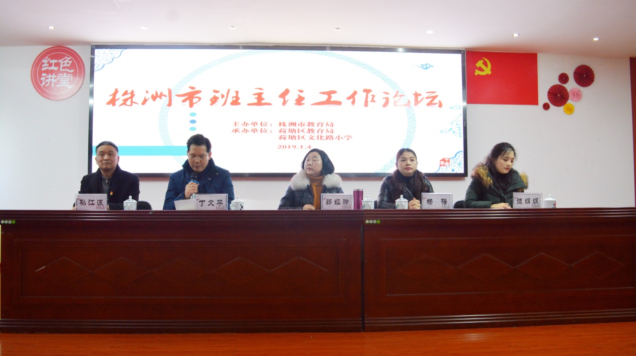 为深入贯彻党的教育方针,坚持把立德树人作为根本任务,全面提高我市中小学德育工作队伍的育人理念、理论水平和实践能力。1月4日,由株洲市教育局主办、荷塘区教育局承办的"新思想、新领域、新方法"班主任工作论坛在荷塘区文化路小学顺利召开。株洲市教科院副院长丁文平主持了论坛,来自全市各地的德育工作管理者及班主任代表200多人参加了论坛活动。在这次论坛中,专家、名班主任云集,他们用先进的育人理念和鲜活的实践经验为大家指引了班级管理和班主任专业成长之路。
