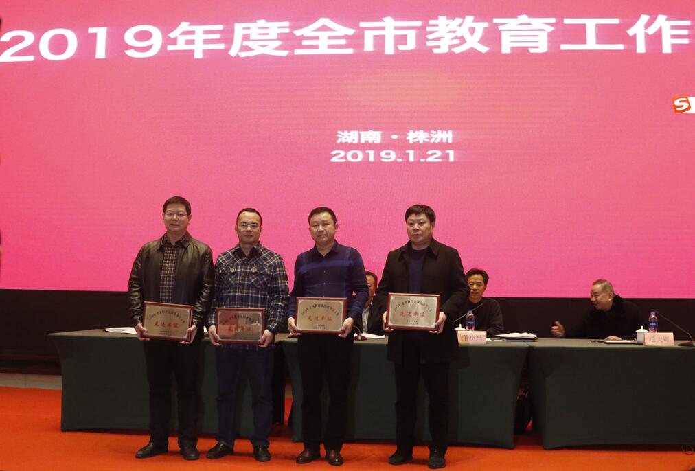 荷塘区教育局党委书记、局长韩永斌(左三)上台领奖