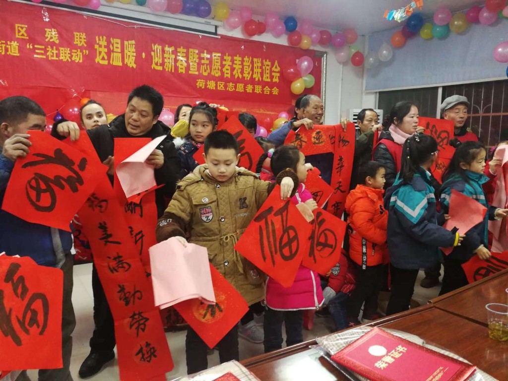 为进一步弘扬扶残助残的传统美德,让残疾人实实在在感受到党和政府的关怀。1月20日,由荷塘区残联主办、荷塘区志愿者协会承办的“送温暖·迎新春”暨志愿者表彰联谊会活动在宋家桥430社区举行,区残联理事长宋周伟、助残志愿者、残疾人及家属共50余人参加了活动。