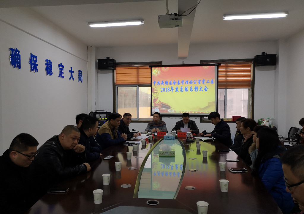 1月29日上午,合泰管理办公室在三楼会议室召开2018年度表彰总结大会,表彰了一年来工作突出的先进集体和先进个人。区委常委、政法委书记成良池,班子成员、社区书记、主任、全体机关干部参加会议,会议由管理办副主任黄兴云主持。