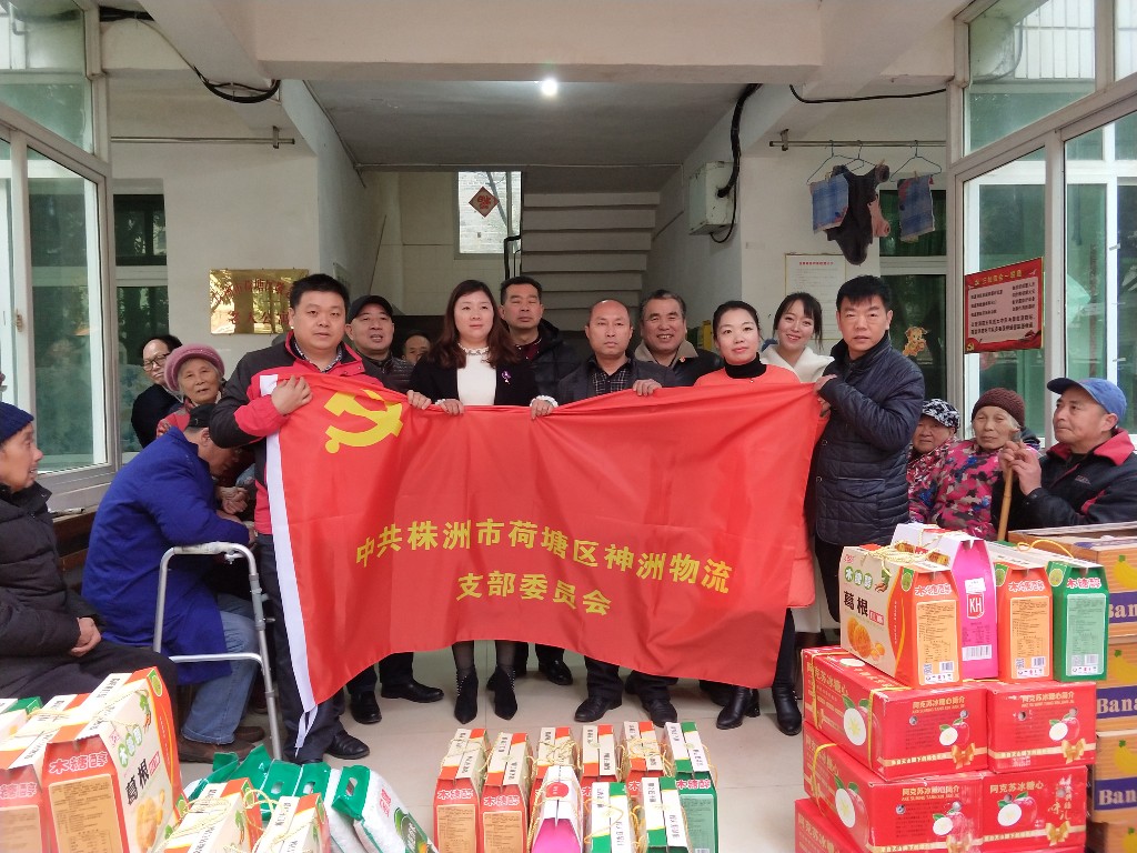在荷塘区敬老院,非公综合党委携区神洲物流党支部一起开展爱心慰问孤寡老人活动,他们给老人送去了大米、水果、点心等慰问物资,并向老人们致以新春问候,使老人们深切感受到来自社会大家庭的“孝心”。