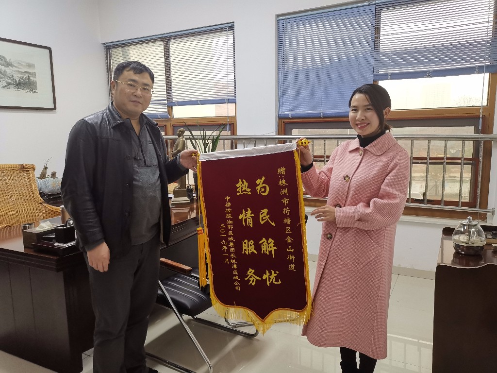 2月11日,金山街道节后上班的第一天就收到了居民送来的一份特殊的礼物,那便是中梁控股湘鄂区域集团长株潭区域公司送的一面书写着“热情服务、为民解忧”的锦旗,这面锦旗是过去为感谢金山街道为中梁集团房地产项目开发所作出的工作。