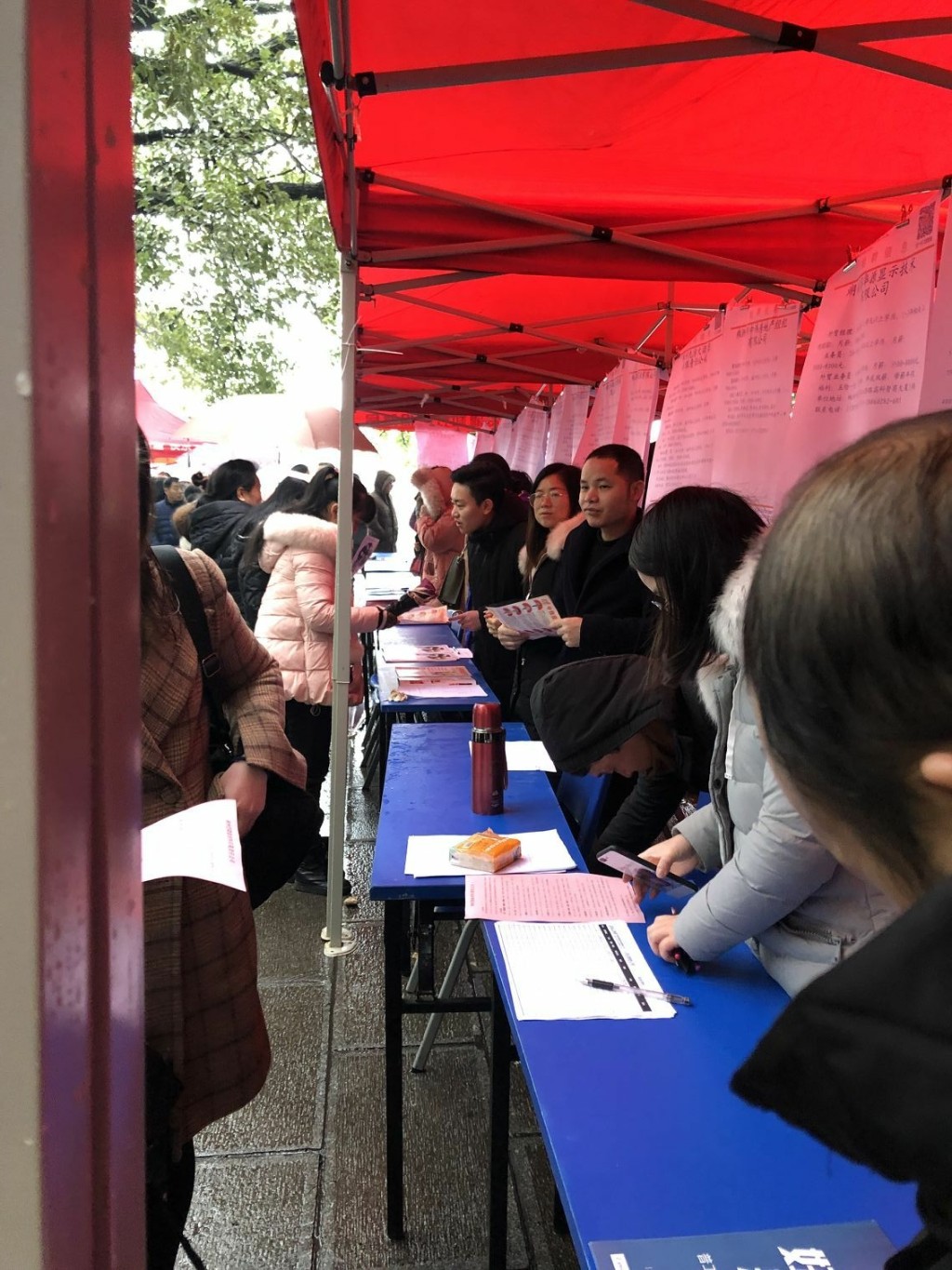 虽然现场下起了小雨,但是挡不住求职者的热情,此次招聘会有56家企业提供了400多个招聘岗位,并在现场面试了求职人员,其中不乏中国人寿、蓝思科技有限公司等知名企业。300余名求职者前来参加应聘,178人与企业现场达成就业意向。