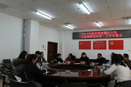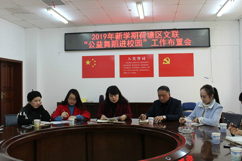 为进一步发挥我区舞协人才优势,活跃校园舞蹈文化,推进我区舞蹈文艺帮扶进校园活动的持续开展,3月4日下午,荷塘区“公益舞蹈进校园”项目2019年新学期工作部署会在荷塘区文联召开。区文联、区教育局、区舞蹈家协会志愿者胡露、朱舸明、刘哲、石思龙以及区文化路小学、区天鹅湖小学2所帮扶试点学校负责人、专干近14人参加会议。