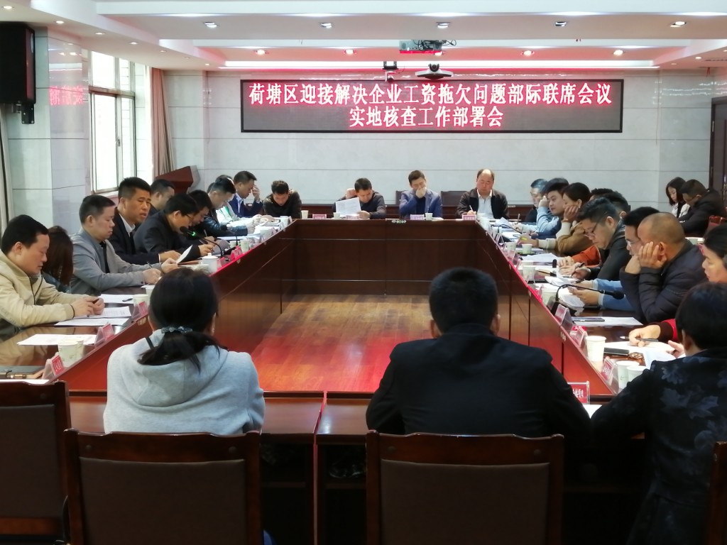 4月11日,荷塘区召开迎接解决企业工资拖欠问题部际联席会议实地核查工作部署会暨治欠保支工作部署会,副区长刘必林出席会议并作讲话,会议由区人社局局长周湘雄主持,相关区直机关、七大块行政负责人和涉检基建单位参加了会议。