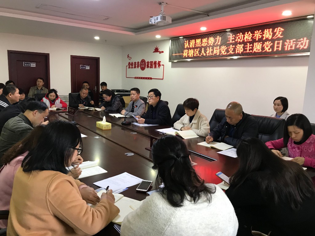 4月12日,区人社局在党员活动室组织开展“认清黑恶势力,主动检举揭发”支部主题党日活动。会议由党支部书记周湘雄主持。