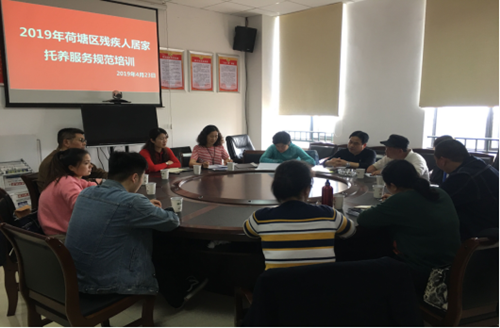 4月23日,2019年荷塘区残疾人居家托养服务规范培训在区政务中心14楼会议室举行,仙庾镇、各街道残联专职委员、蒲公英助残服务机构负责人以及机构服务人员、区残联相关工作人员等参加会议,会议由区残联理事长宋周伟主持。