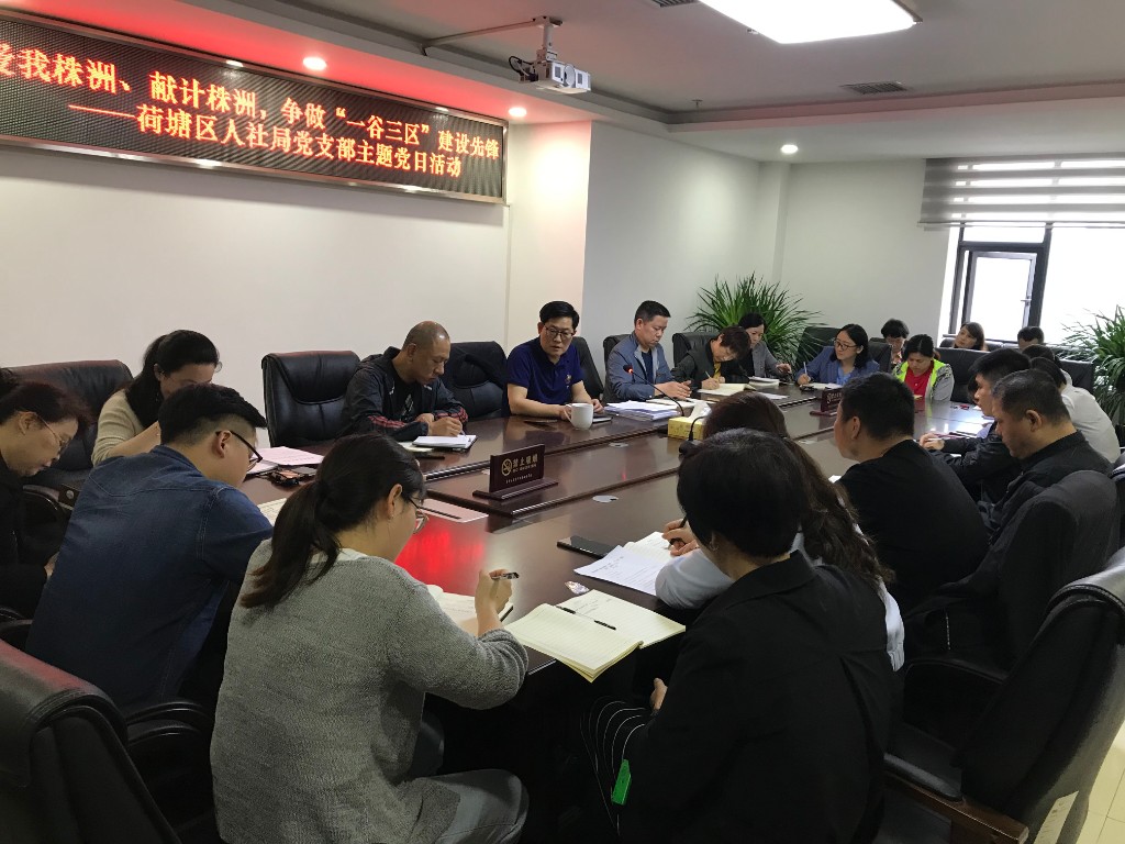 5月17日,区人社局在党员活动室组织开展“爱我株洲、献计株洲,争做‘一谷三区’建设先锋”支部主题党日学习活动。学习研讨活动由党支部书记周湘雄主持,全局党员干部参加。