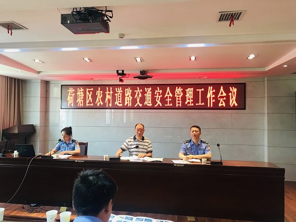 为认真贯彻落实农村道路交通安全工作,有效预防和减少道路交通事故的发生。5月23日上午,荷塘区召开农村道路交通安全管理工作会议,副区长、荷塘公安分局局长黄团结,荷塘交警大队大队长王勇出席会议,会议由荷塘交警大队副大队长李海燕主持。各镇、街道办负责人、交通安全管理员、交通安全劝导员及驻村辅警50余人参加会议。