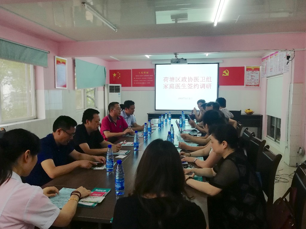 6月5日下午,荷塘区政协医卫组在区政协党组成员、秘书长谭二勇,医卫组组长、卫健局局长黄国初的带领下来到金山街道社区卫生服务中心开展“家庭医生签约”调研活动。