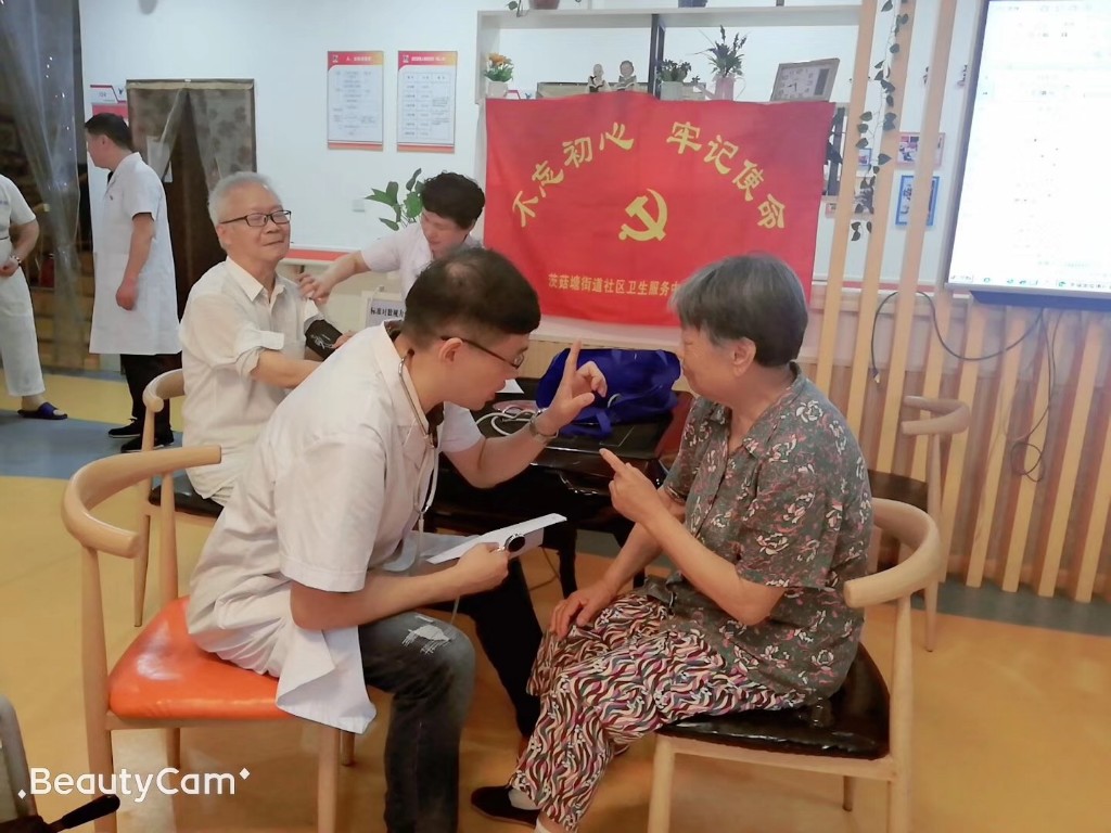 为贯彻落实“不忘初心 牢记使命”主题教育,加强党员理想信念教育,茨菇塘街道社区卫生服务中心支部为六月入党的三名党员过了一个不一样的“政治生日”。 6月20日,茨菇塘中心支部的党员和入党积极分子们,带着B超、心电图机等检查设备,来到茨菇塘街道幸福里,按照国家基本公共卫生服务规范,为入住在盛康长者照顾之家的全体老人开展免费体检。