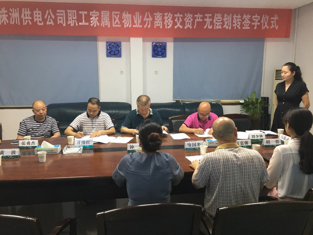 6月20日上午,荷塘区驻区中央企业“三供一业”物业分离移交资产无偿划转仪式在国网株洲供电公司三楼会议室举行,金科集团作为资产接收方参与仪式,这是荷塘区自启动“三供一业”分离移交工作的首例。