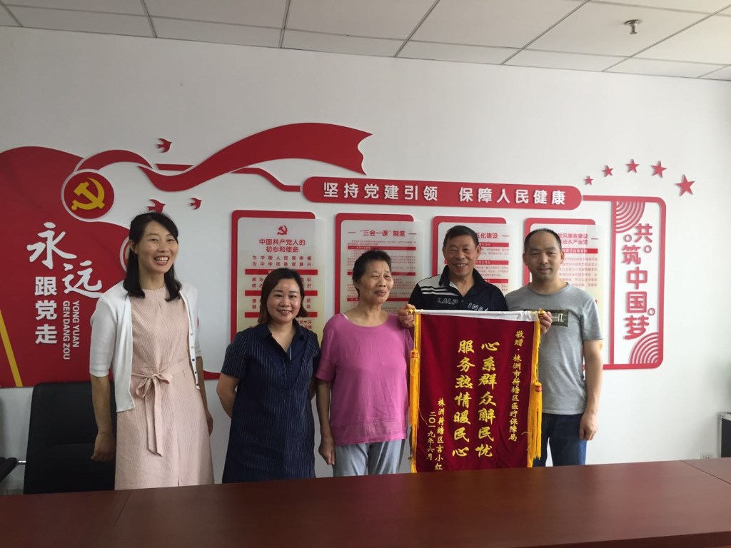 6月26日上午,荷塘区市民汤女士携父母将一面写有”心系群众解民忧,服务热情暖民心“的锦旗送到荷塘区医疗保障局,并对荷塘区医疗保障局全体工作人员表示感谢。