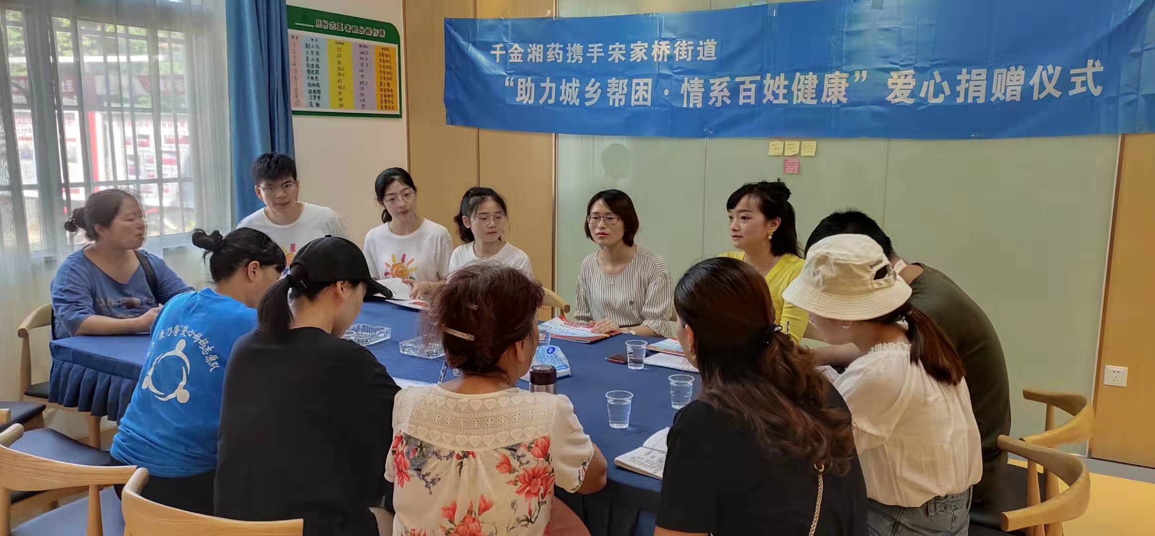 7月25日上午,宋家桥街道联合湖南千金湘江药业股份有限公司在街道月桂社区志愿者之家举办了“助力城乡帮困·情系百姓健康”爱心捐赠活动。千金湘药公司党群办副部长殷耀芬,街道劳保站站长刘海燕,幸福办和社工站相关工作人员,城乡帮困项目社工及志愿者等参加了此次捐赠仪式。