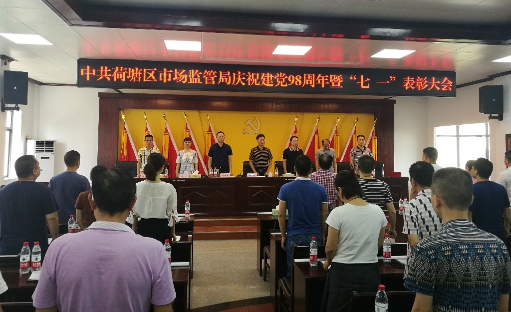 7月25日,为表彰先进典型,弘扬党组织的战斗堡垒作用和共产党员的先锋模范作用,中共荷塘区市场监督管理局党组召开庆祝建党98周年暨“七一”表彰大会,全局70余名党员同志参加会议。