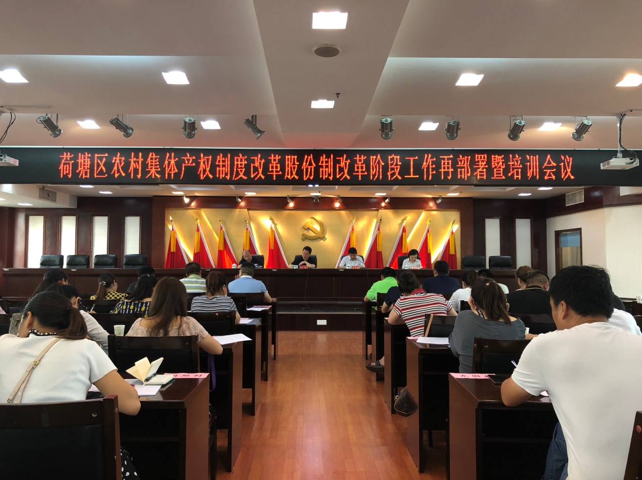 8月2日上午,荷塘区召开农村集体产权制度改革股份制改革阶段工作再部署暨培训会议,总结农产改前两个阶段——集体资产清产核资、集体经济组织成员身份确认工作取得的成效,就现已在全区范围全面铺开的第三阶段股份制改革工作进行再部署及相关业务培训,副区长余鹏参加会议。