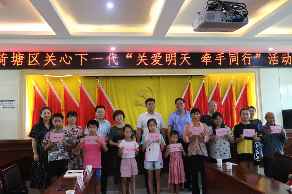 随后举行活动捐赠仪式,胡开元代表区委、区政府,为困难孩子发放慰问金,殷切鼓励他们好好学习、天天向上、健康快乐成长,长大后成为一名对社会有用的人。同时他希望,在座各位家长认真教育好孩子,从小培养起爱党爱国,爱学习、爱劳动的意识,让他们终身受益,不辜负党委、政府的关心与支持。在座的家长纷纷表示一定认真培养孩子,引导他们自强、自立、自信,学到一技之长,把他们培养成为对国家、对社会有用的人才。活动最后进行了合影留念。