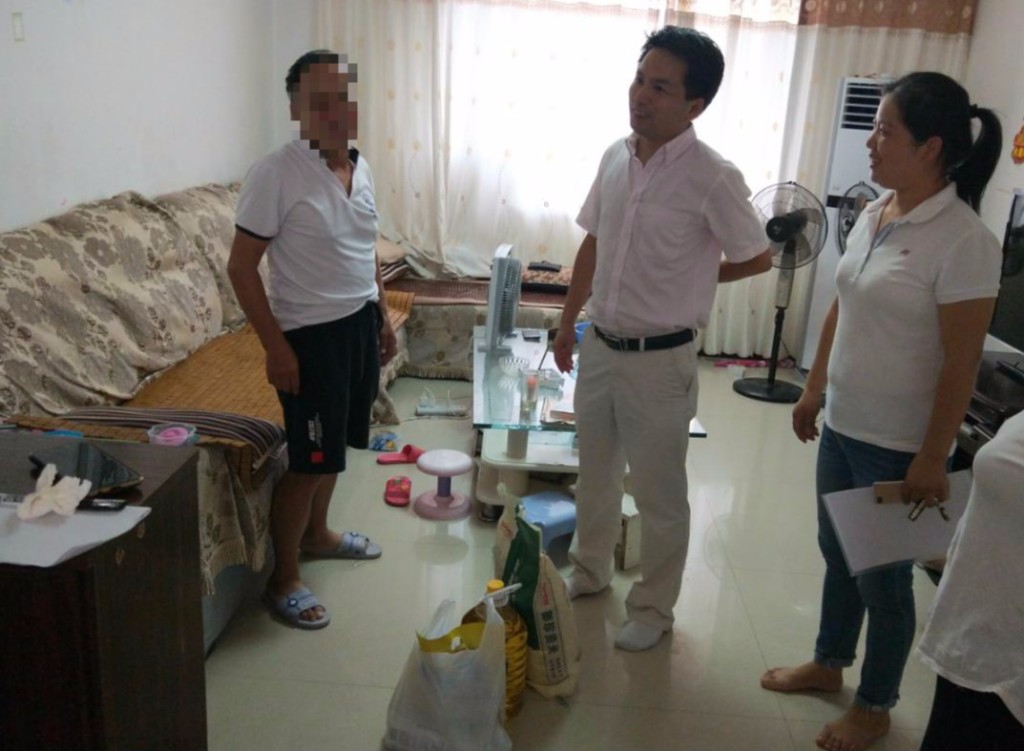 每到一户,佘高平亲切询问特扶人员的身体健康状况和家庭情况,和特扶家庭拉家常、听诉求,详细记录生活所需所求,以便为他们提供力所能及的帮助,勉励他们要振作精神,勇敢面对坎坷和挫折,重拾生活的信心和勇气,遇到困难及时向社区和街道反映,早日过上幸福美满的生活。佘高平在与失独家庭杨某进行交谈时了解到,他上有86岁已中风的老父亲要赡养,下有5岁多年幼孙女要抚养,家庭主要经济来源是出租车运营的微薄收入。杨某夫妻对街道卫健办工作人员的到来表示感谢,表示自己也会乐观面对生活。
