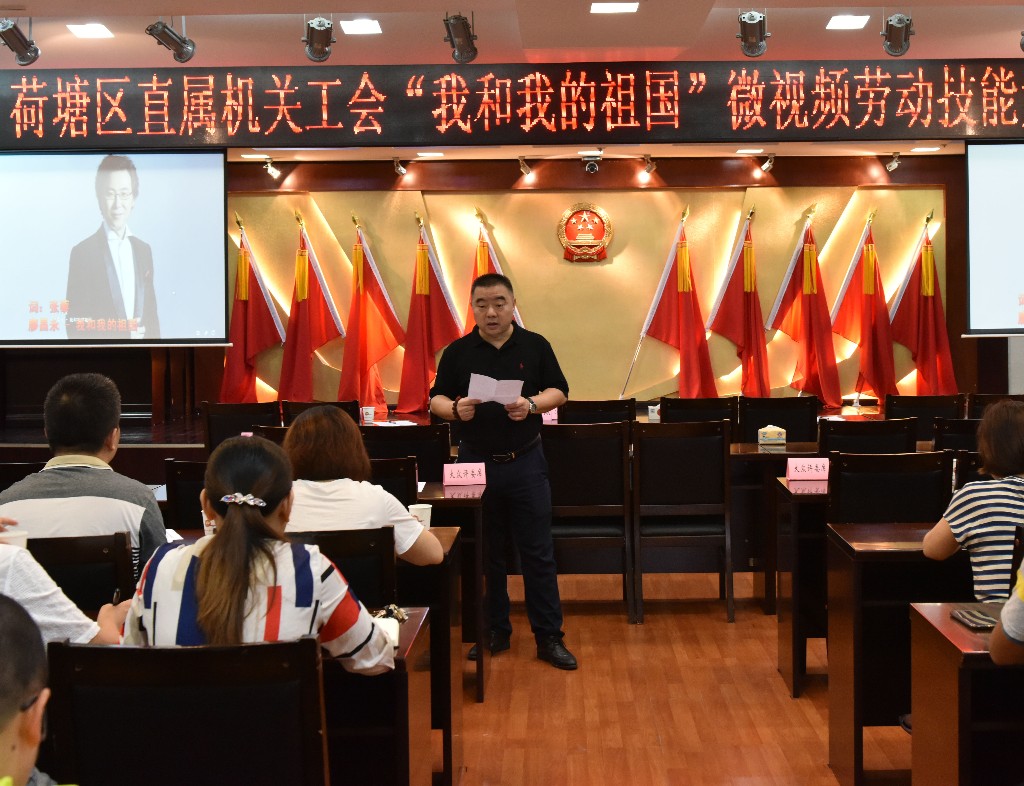 9月6日,荷塘区直属机关工会举行“我和我的祖国”微视频技能比武的决赛,来自区直属机关工会的30多支工会小组参加了比赛。区总工会主席张岚出席本次活动。
