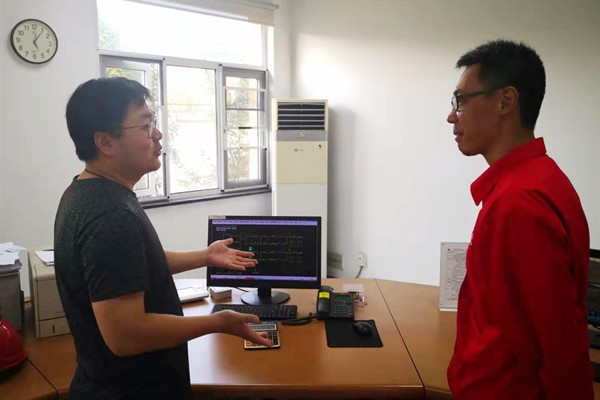 株洲分输站副站长钟若奇向检查组介绍设备运维情况