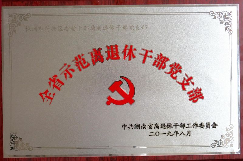9月26日上午,荷塘区委组织部原部长、区委老干部局离退休干部党支部书记汪再德作为株洲市离退休干部党支部书记代表,参加湖南省离退休干部“礼赞新中国,奋进新时代”太极拳比赛颁奖仪式暨全省示范离退休干部党支部授牌仪式,领回了由省局龚健局长亲自颁发的“全省示范离退休干部党支部”牌子。