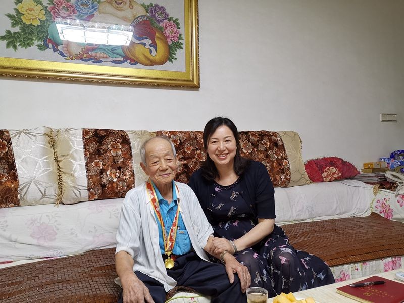 市委组织部副部长、市委老干部局局长、市离退工委书记吴佳辉与抗日老战士张庆功合影