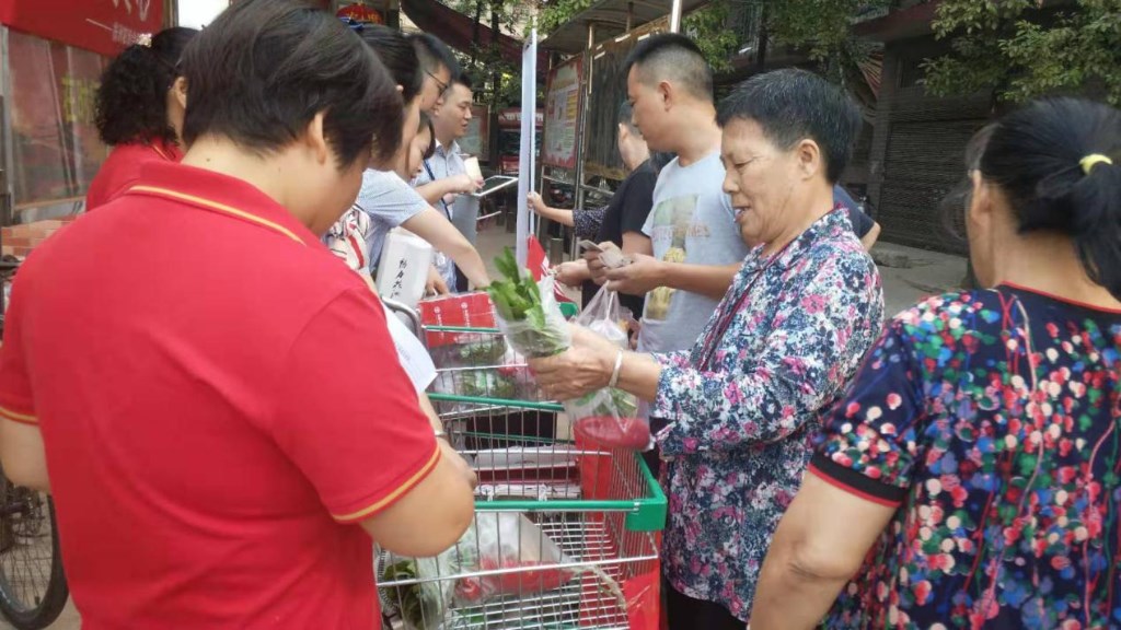 在活动现场,凡年满50周岁的老人凭身份证可以用一元钱换购一份价值6元的新鲜蔬菜,这次的新鲜蔬菜都是针对老年人慢性疾病的“特种”蔬菜,有生菜、养心菜、土豆等,有的能降血压、血脂,有的能预防心脏相关疾病。“一元钱可以换购到这么多的新鲜蔬菜,真的是特别的划算,感谢你们”社区居民李奶奶这样说道。